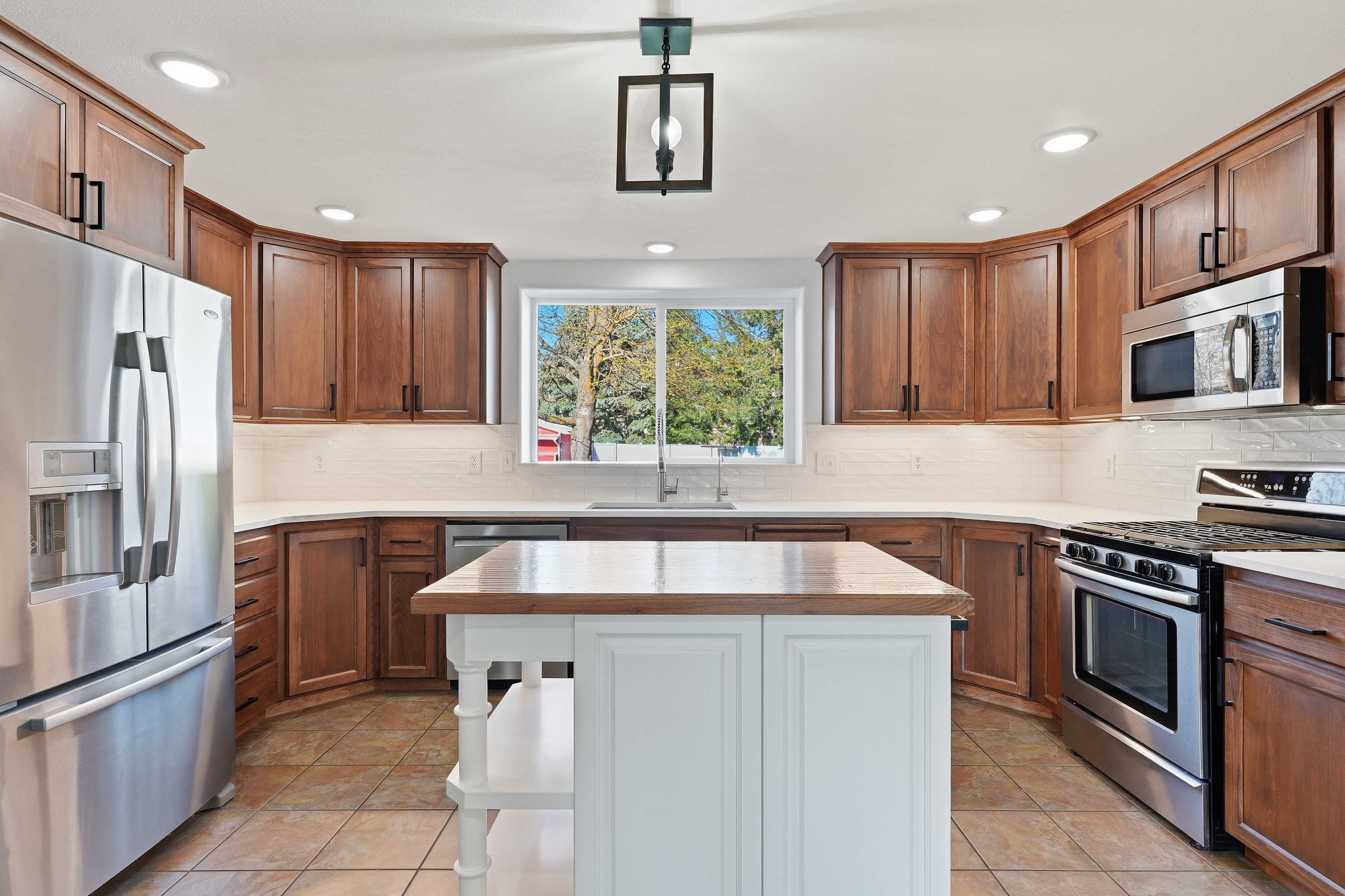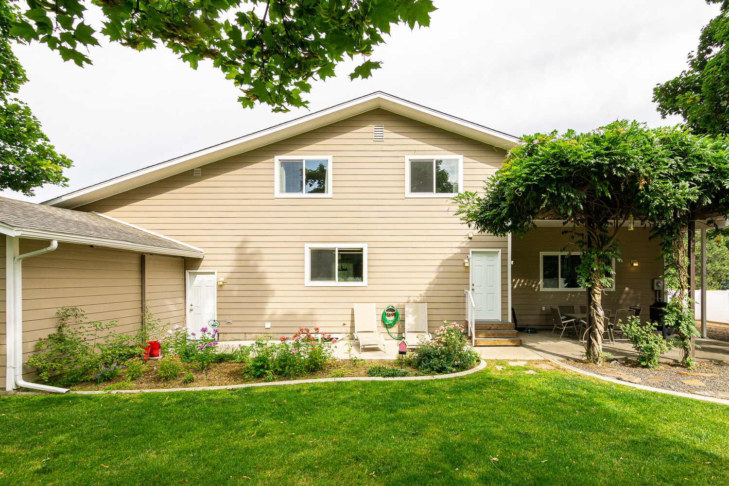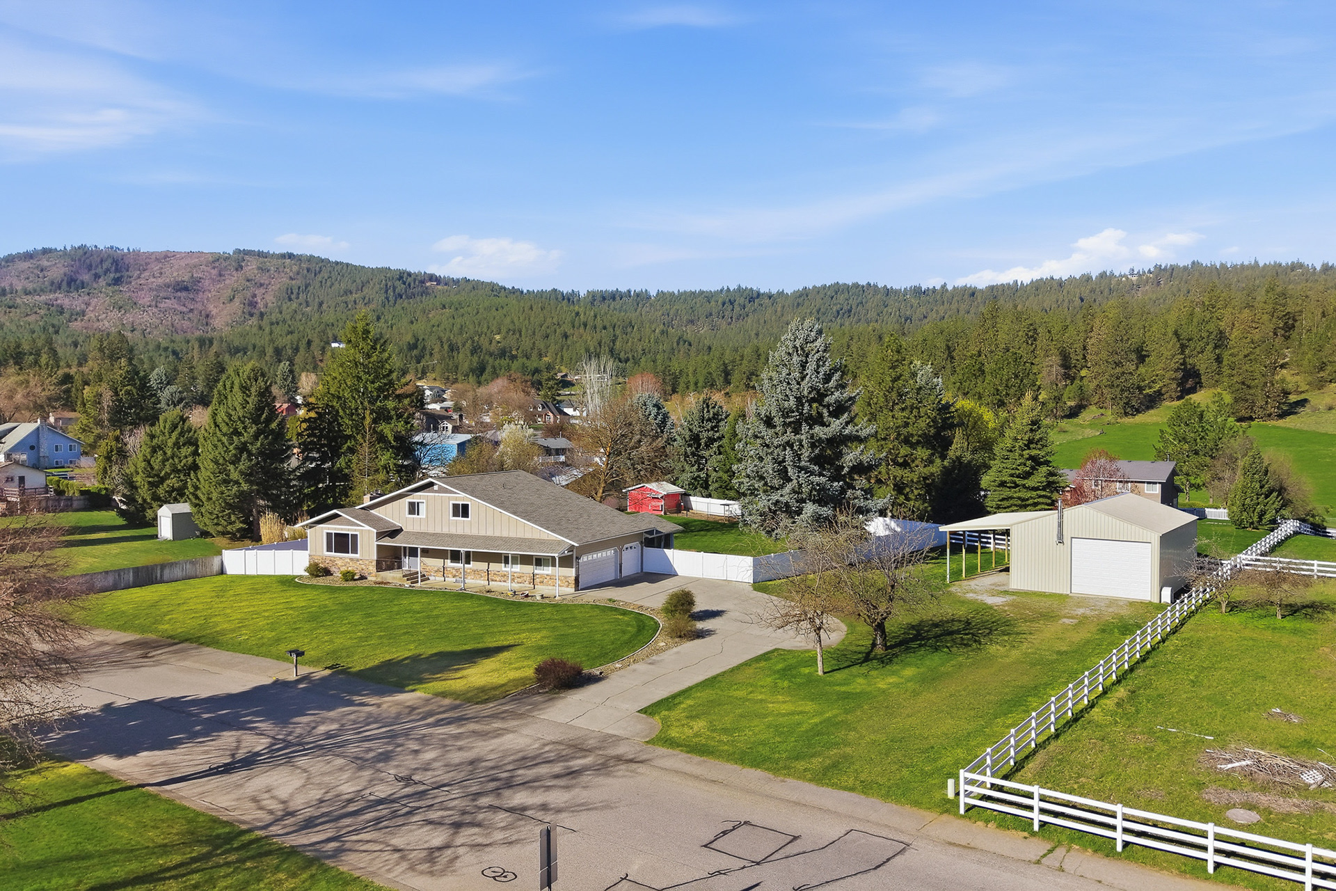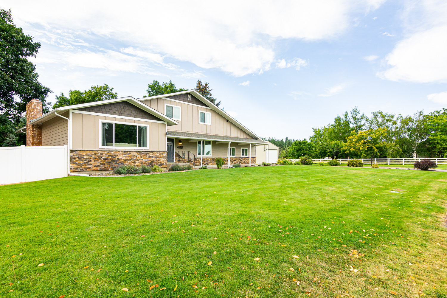 Take a look at this Beautiful Ponderosa Home situated on just under an Acre with a 30x40 Heated Shop / Lean-to, plus a 3-car Attached Gar & 4th covered bay. The updated interior features a spacious kitchen with quartz countertops, custom cabinets, Island, & ample storage. Two main-floor living areas with vaulted ceilings, new carpet, paint, doors, trim, crown molding, hardwood floors, & a slate tile wood-burning fireplace. Upstairs offers 3 bedrooms including a large primary suite with walk-in closet & updated bath. The full finished basement includes 2 egress bedrooms (one set up as a media room), game/hobby space, office, full bath, & storage/mechanical room. Outside enjoy a covered patio & fully fenced private backyard with mature landscaping, sprinklers, garden space, fruit trees, chicken coop shed, fire pit, & water feature. Close to the Elementary School, Dishman Hills, Iller Creek & Phillips Creek Trailhead.